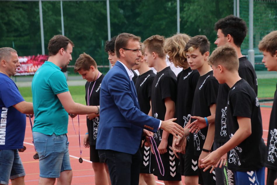 Dobré jméno rožnovské házené dělá také nová generace hráčů. Pro medaile si tak přišli mladší žáci za 1. místo ve druhé Zlínské lize a starší žáci za 3. příčku v první Zlínské lize. Následovalo hlavní exhibiční utkání dne, v němž proti sobě nastoupila družstva druholigového TJ Rožnov a extraligového HC Zubří.