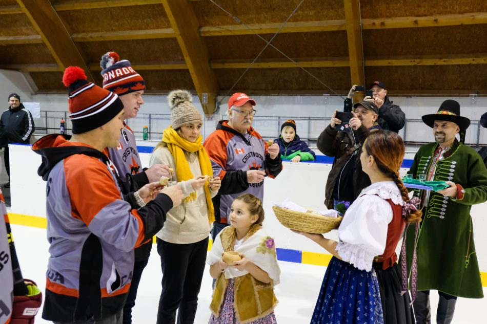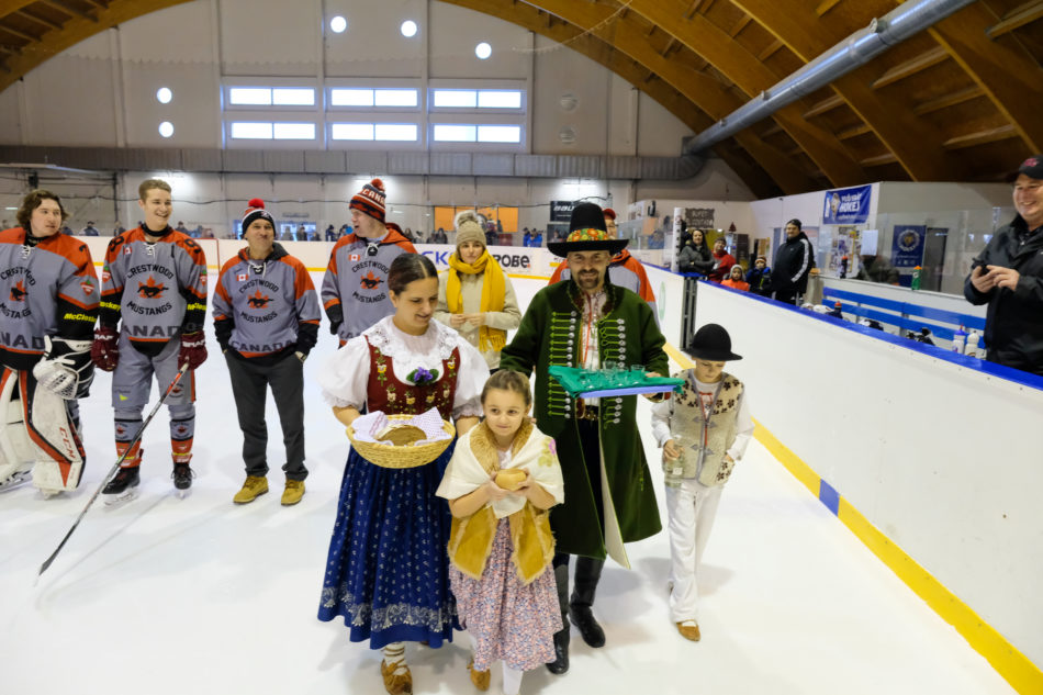 Rožnované uvítali Kanaďany se chlebem, solí a ty plnoleté i slivovicí. Následoval poslech české i kanadské hymny, po kterém vhodil úvodní buly rožnovský místostarosta Jan Kučera. „Prvotní optimismus plynoucí ze zpráv, že předchozí 3 utkání s Orlovou, Frýdkem-Místkem a Novým Jičínem hosté prohráli, zchladil náš vlažný nástup a po sedmi minutách i první inkasovaný gól. Naši borci pokračovali v hledání cesty, jak na neznámý styl hry vyzrát, ale ze začátku se jim to nedařilo. Ačkoliv jsme už do konce první části neinkasovali, moc to na úspěšnou exhibici nevypadalo,“ popsal průběh zápasu prezident rožnovského hokejového klubu Marek Moll a pokračoval: „Druhé dějství už ale bylo pro naše diváky zajímavější. Ještě chvíli sice pokračovala úspěšná taktika Kanaďanů a naše hledání receptu na ně, když nám ve 26. minutě vstřelil další gól Mitchel Booth a o 10 minut později zvýšila na 0:3 dvojice Wyatt Wigginse a Tanner Barbeau, ale pak už začali úřadovat domácí. Tři minuty před koncem druhé části snížil na 1:3 Radek Miklas po nahrávce Patrika Šimíčka a krom významného optimistického signálu směrem k divákům tak zpříjemnili trenérům a hráčům odchod do šaten. Úvod poslední části naši borci zvládli na výbornou a předurčili tak drama až do konce zápasu. Minutu po začátku třetiny zafungovala spolupráce Radka Miklase a Petra Kelnara, který snížil na 2:3 a zařídil tím pro tým Černých vlků nejen snížení na jednobrankový rozdíl, ale i silnou akustickou podporu publika. Jak významný to byl počin se ukázalo o tři minuty později, kdy domácí diváky odměnila za jejich projev dvojice Radek Miklas a Martin Dořičák, kteří zařídili vyrovnání skóre na 3:3. Začal se hrát opravdu pohledný hokej, kdy hosté ukazovali jak jsou silní v rychlosti a v přehledu na ledě a naši zase svou vůli vyhrávat souboje a jak se obětavě pokládají do střel a nahrávek. Tento souboj už ale do konce třetiny přinesl jen tak říkajíc nervový zážitek pro obecenstvo, gól ale žádný.“