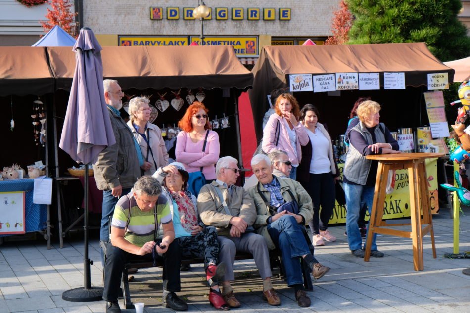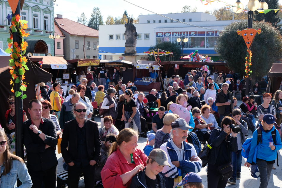 V pátek 18. a sobotu 19. října patřilo rožnovské Masarykovo náměstí tradičnímu Všesvatskému jarmarku. Akci, kterou pořádal T klub-kulturní agentura a město Rožnov, si nenechalo ujít na 6 tisíc lidí – od seniorů až po nejmenší děti. Stánkařů letos dorazilo 106, přičemž jejich nabídka byla tradičně pestrá – dalo se koupit vše od zabijačkových specialit až po “dušičkové” kytice a věnce. Oba slunečné podzimní dny přitom byly tak jako vždycky napěchované skvělým kulturním doprovodným programem, v němž se představili: CM Poštár, děti ze ZŠ 5. května, Mosskin, Downbellow, Swing dragons a CM Jánoš.